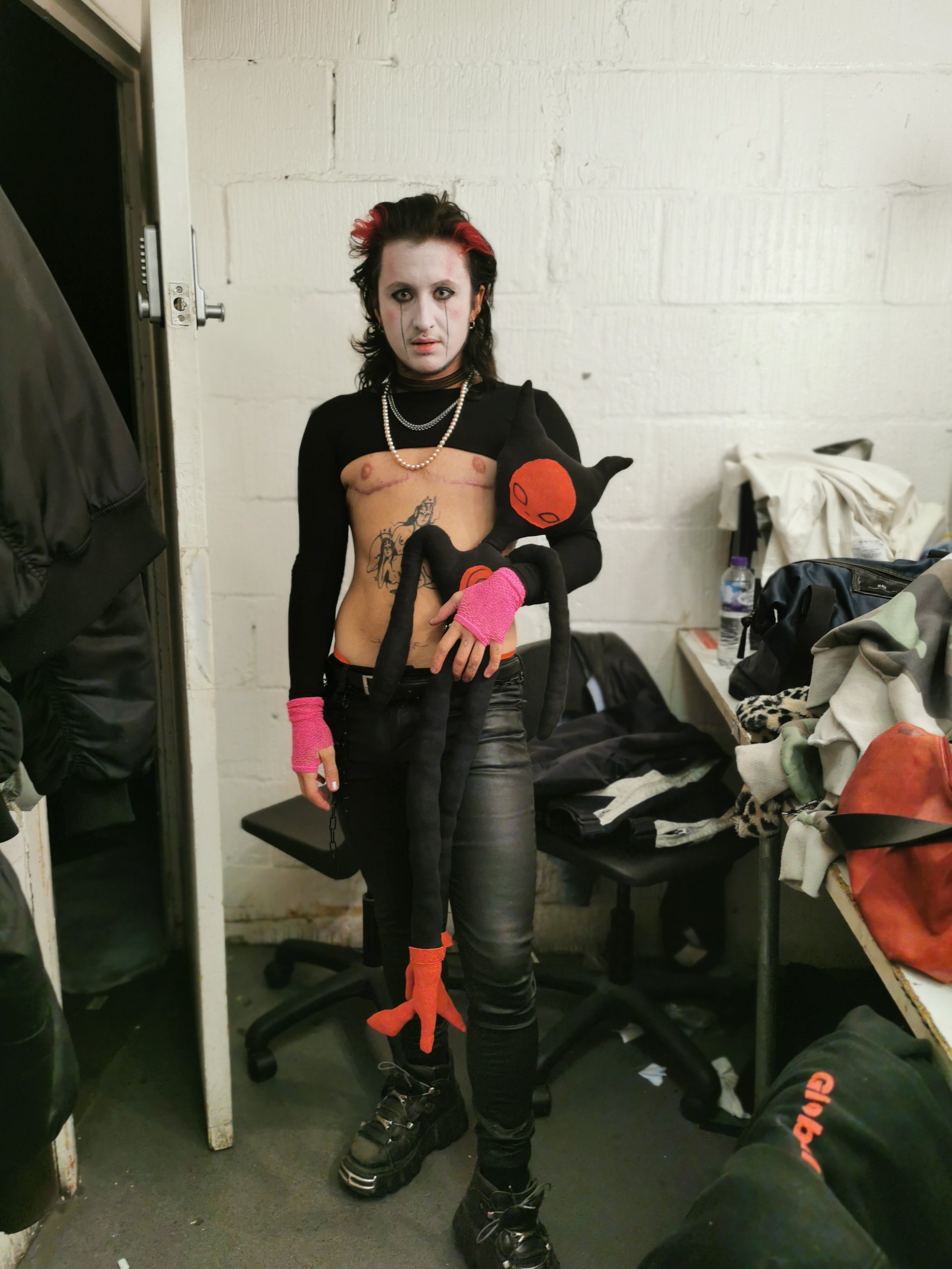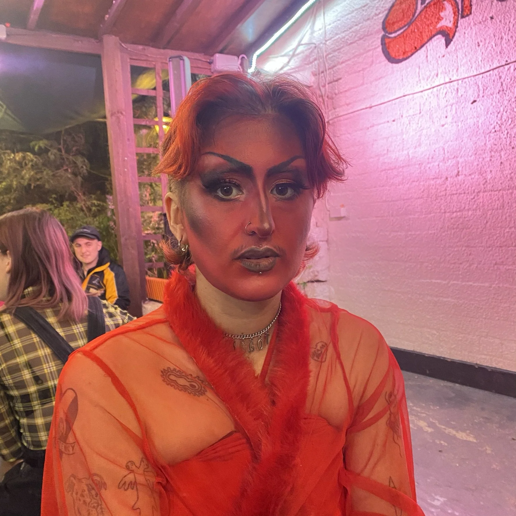 Male Doll is an alter ego under which I perform. Male Doll is a femme demon drag queen. Male Doll usually performs to hyper pop songs, lip syncing and with hyper femme, sexualised tones.